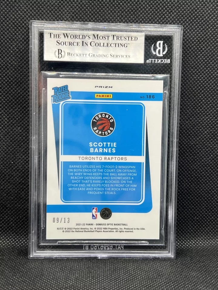 2021-22 Optic Basketball Scottie Barnes FOTL Purple Stars #0913 BGS 9 MINT