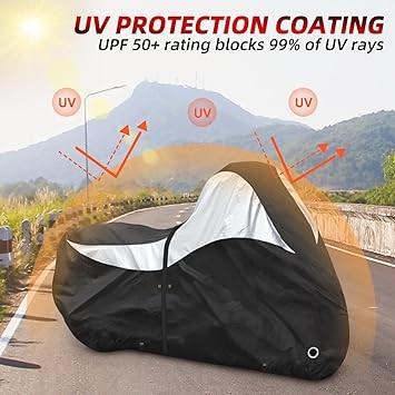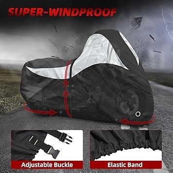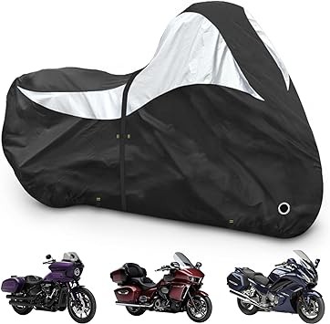 600D Motorcycle Cover,Heavy Duty Waterproof Motorcycle Covers Outdoor Storage with Lock-Holes Compatible with Harley Davidson, Honda, Suzuki, Yamaha (Side Box)