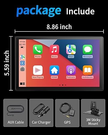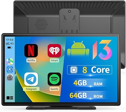 9 Portable Screen Wireless CarPlay Android Auto Android 13.0 System 4G+64GB, 8Core, Support Netflix TF Card Bluetooth YouTube Tictok GPS for Car