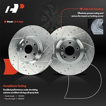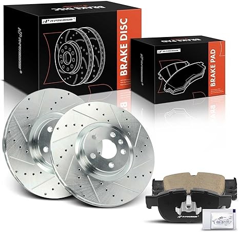 A-Premium 13.58 inch (345 mm) Front Drilled and Slotted Disc Brake Rotors + Ceramic Pads Kit Compatible with Select Volvo Models - XC60, XC90, XC40, S90, V60, V90, V90 Cross Country, 6-PC Set