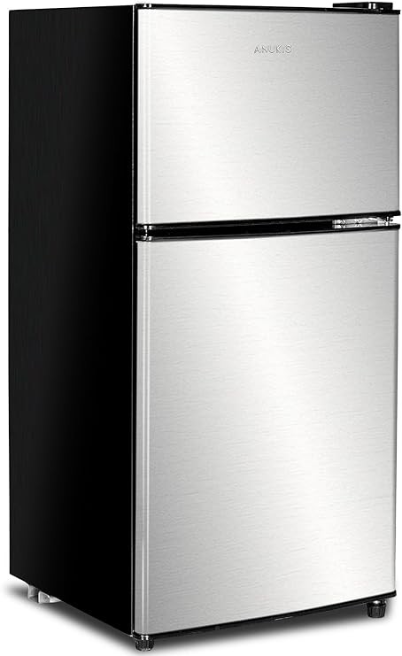 Anukis Compact Refrigerator 3.5 Cu Ft 2 Door Mini Fridge with Freezer for Apartment, Dorm, Office, Family, Basement, Garage - Silver