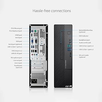 ASUS ExpertCenter D500SC Small Form Factor Desktop PC, Intel Core i5-11400, 8GB DDR4 RAM, 512GB PCIe SSD, TPM, Windows 11 Professional, Black, D500SC-XH503