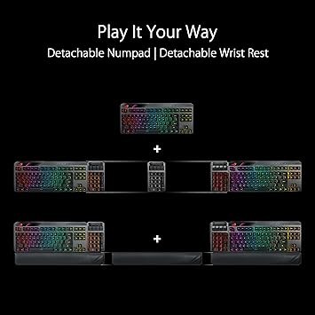 ASUS ROG Claymore II 100% 80% TKL Wireless RGB Modular Gaming Keyboard, ROG RX Red Switches, PBT Doubleshot Keycaps, Detachable Numpad, Wrist Rest, Media Controls, USB Passthrough - Black PBT