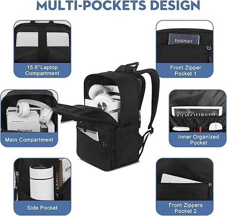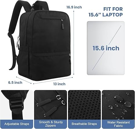 Backpack for College Students, Black Backpack for Men, School Backpack for Teens, Water Resistant Bookbag Travel Laptop Backpack 15.6 inch,Mens Work Backpack Personal Item Backpack (Black)