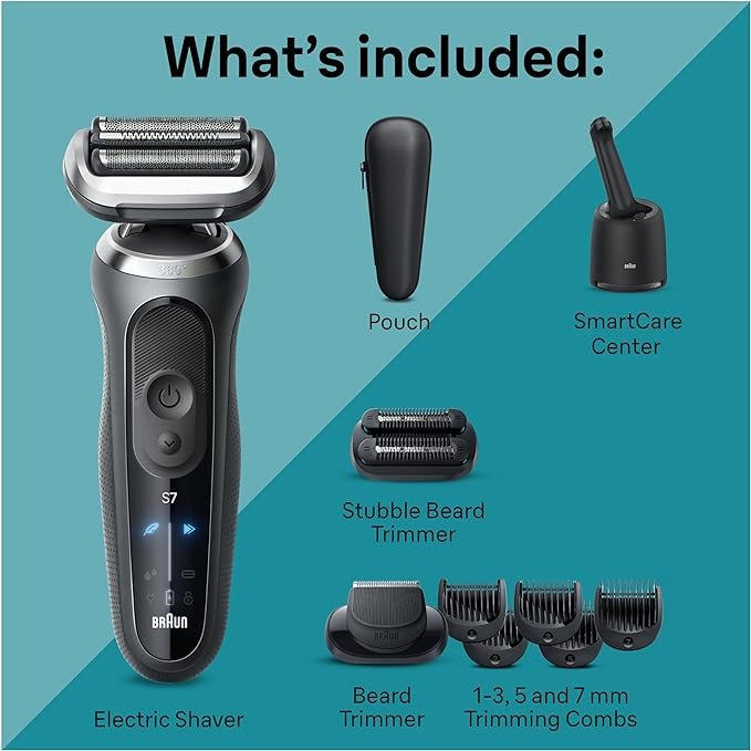 Braun Electric Shaver for Men, Series 7 7185cc, Wet & Dry Shave, Turbo & Gentle Shaving Modes, Waterproof Foil Shaver, Space Grey