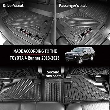 Compatible for 2013-2023 2024 Toyota 4Runner 5 Seats Floor Mats Cargo Trunk Liner and Rear Seat Backrest Mats TPE Rubber Protection Mat Upgrade Materials for Toyota 4 Runner Accessories