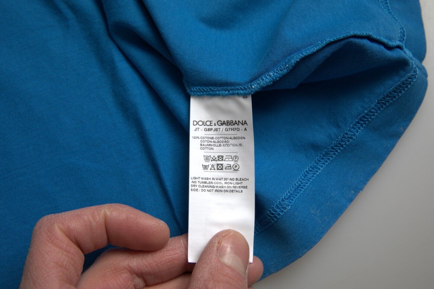 DOLCE & GABBANA T-shirt Blue Logo Print Short Sleeve Cotton IT50US40L
