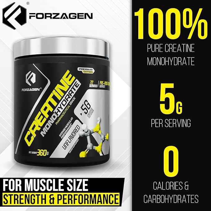 Forzagen Creatine Monohydrate Powder Unflavored, Micronized Creatine Powder for Muscle Gain for Men & Women, Creatina Monohidratada en Polvo, Creatina para Aumentar la Masa Muscular - 72 Servings