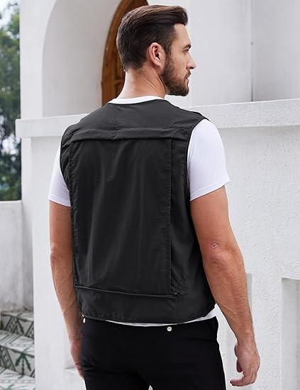 Gihuo Mens Fishing Vest Summer Outdoor Work Vest Utility Safari Travel Lightweight Sleeveless Jackets with Pockets