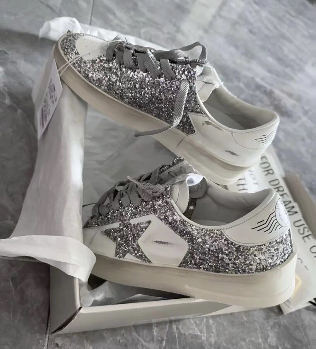 Golden Goose Women New Leather Sequin Multicolor LaceUp Flats Leisure Shoes Ggdb