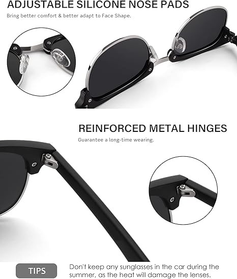GQUEEN Classic Horn Rimmed Semi Rimless Polarized Sunglasses for Men Women GQO6