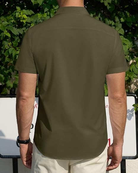 J.VER Men's Short Sleeve Dress Shirts Stretch Stain Shield Casual Button Down Shirts Solid Formal Shirt