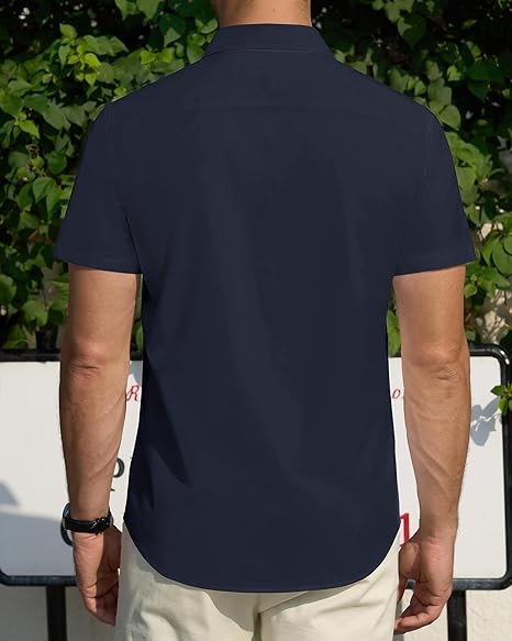 J.VER Men's Short Sleeve Dress Shirts Stretch Stain Shield Casual Button Down Shirts Solid Formal Shirt