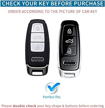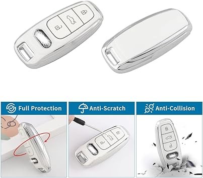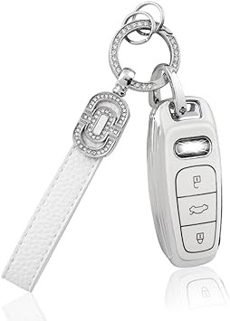 Key Fob Cover for Audi Accessories A3 A6 A7 A8 Q7 Q8 E-Tron RS7 S6 S7 SQ7 SQ8 Full Key Protector with Bling Girly Key Chain 3 Button Car Key Case TPU White Silver