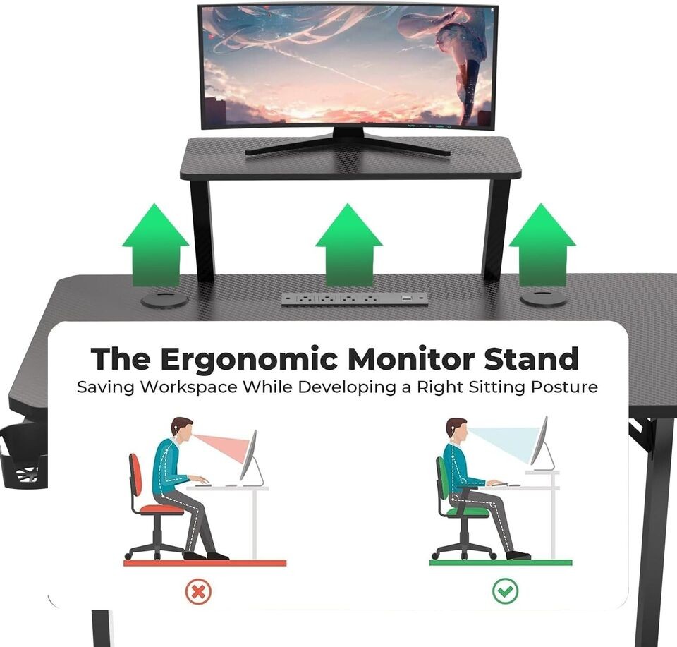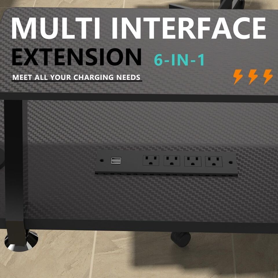 L-Shaped Gaming Desk Corner Table Computer Desk with RGB Light & Power Outlets