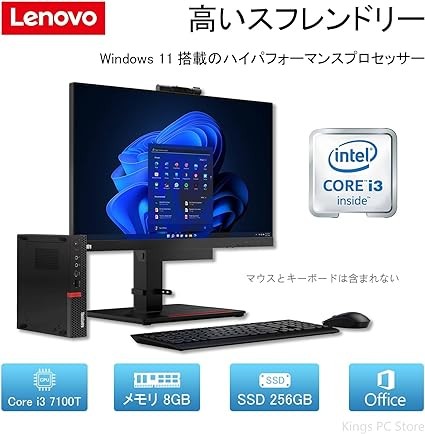 Lenovo M710 Desktop PC, Used, 8 GB SSD, 256 GB Desktop PC, Core i3 7100T, Office Equipped with MS Win11 Integrated PC, 23.8 Inch (Kings PC) (Renewed)
