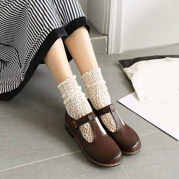 Mary Janes Womens Flats T-Strap College Shoes Brogue Party Pumps Oxfords 34-48