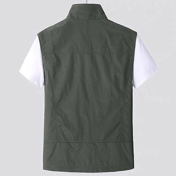 Mens Full-Zip Lightweight Softshell Vest Quick Dry Outdoor Casual Multi Pocket Fishing Vests Jacket for Hiking Golf