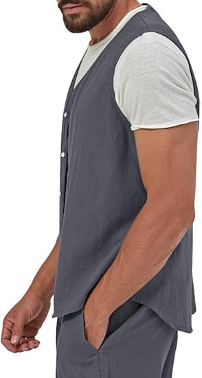 Men’s Summer Linen Waistcoat Lightweight Button Vest Cardigan Outdoor Casual Tops Business Suit Waistcoat