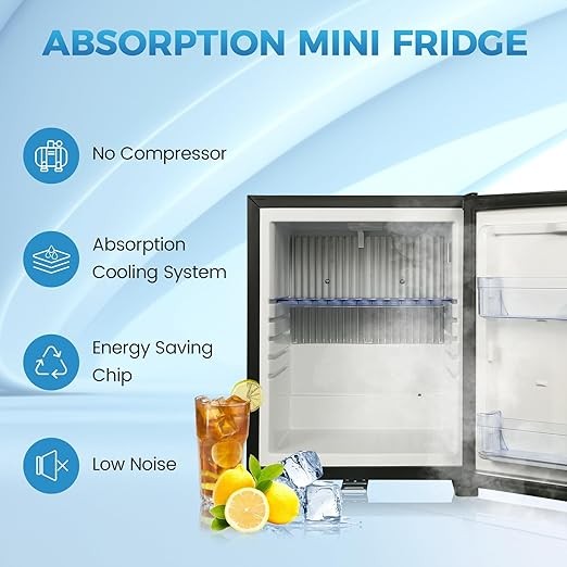 Mini Fridge for Bedroom, 1.07 cu.ft 110V Quiet Fridge with Lock, Small Silent Compact Refrigerator for Dorm RV Hotel Office, Noise Absorption, Black