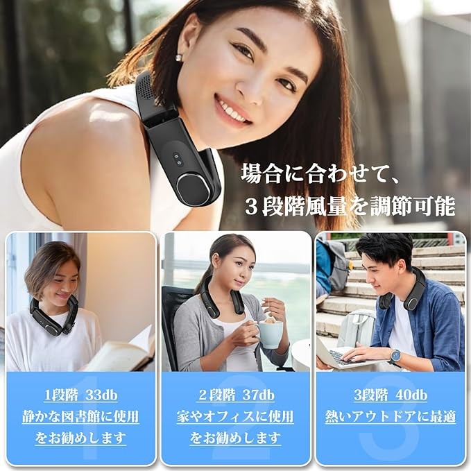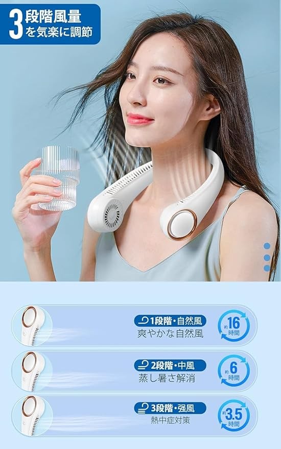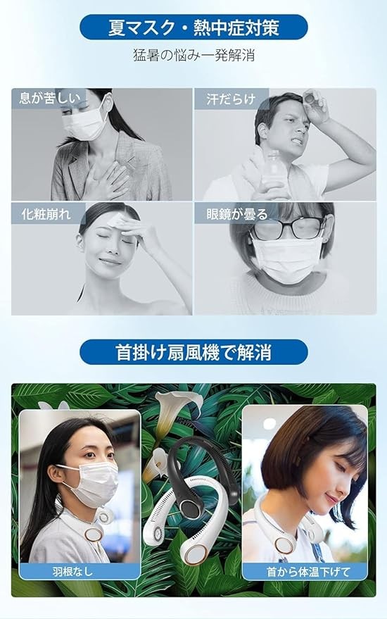Seefox Neck Cooler (2024 Summer Limited Edition) Neck Fan, Cooling Plate Included, Wingless, 3 Levels of Air Flow Adjustment, Rapid Cooling, U-Shaped Neck Fan, Quiet, Powerful Blower, Lightweight