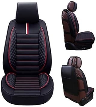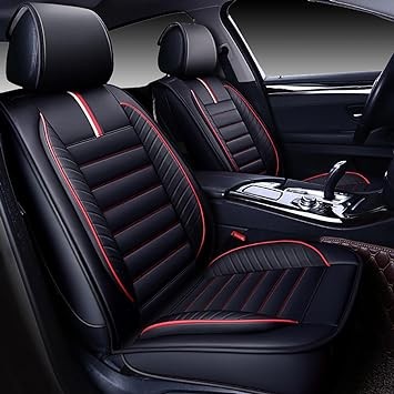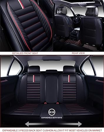 OASIS AUTO Car Seat Covers Premium Waterproof Faux Leather Cushion Universal Accessories Fit SUV Truck Sedan Automotive Vehicle Auto Interior Protector Full Set (OS-001 Black&Red)