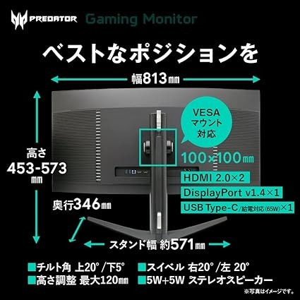 Predator Gaming Monitor 34 Curved 219 Ultra Wide OLED Matte 175Hz 0.1ms USB Type-C 65W Powered KVM Height Adjustable VESA DisplayHDR True Black 400 X34Vbmiiphuzx
