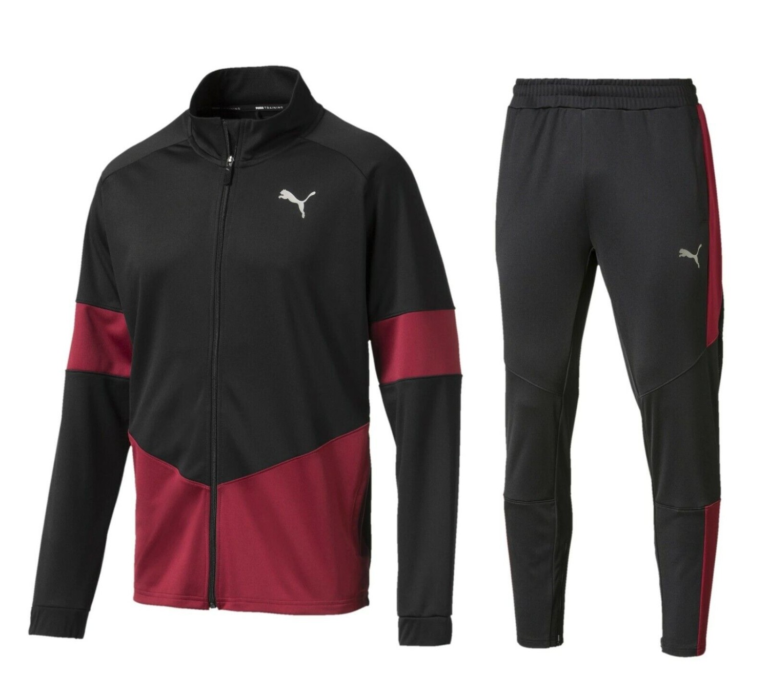 PUMA Men's Energy Blaster Black Maroon Fashion Sports Jacket Pants Tracksuit
