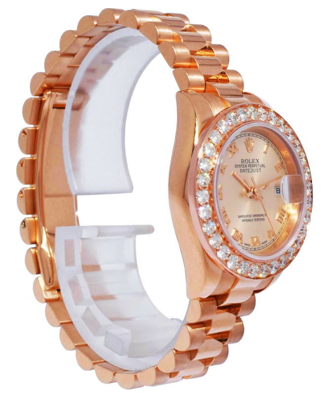 Rolex Datejust President 18k Rose Gold Pink Dial Diamond Bezel 26mm Watch 179175
