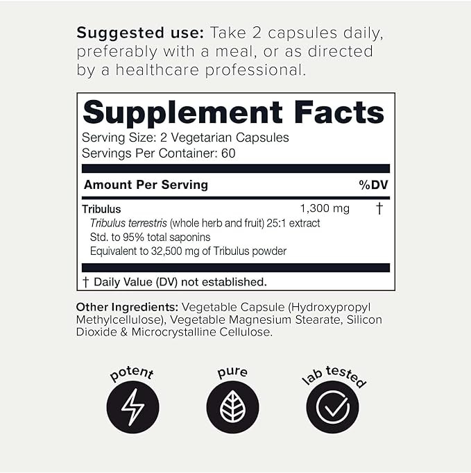 Toniiq Ultra High Strength Tribulus Capsules - 95% Steroidal Saponins - 1300mg Concentrated Extract Formula - 120 Caps