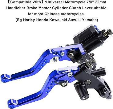 Universal Motorcycle 78 22mm Handlebar Brake Master Cylinder Clutch Lever CNC Left & Right Set Compatible with Harley Honda Kawasaki Suzuki Yamaha( Piston Diameter 12.7mm (Blue)