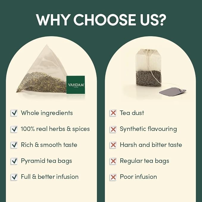 VAHDAM, Original Himalayan Green Tea (100 Count) High Grown, Non GMO, Gluten Free, Med Caffeine | Earthy, Smooth & Refreshing | Resealable & Individually Wrapped | Plant-Based Pyramid Tea Bags