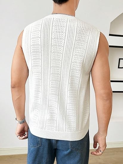 Verdusa Men's Sleeveless Round Neck Knit Tank Top Casual Sweater Vest