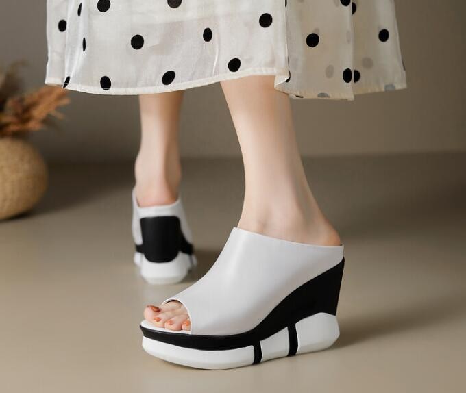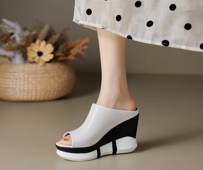 Womens Fashion Summer Open Toe Color Matching Leather Slippers Wedge High Heels