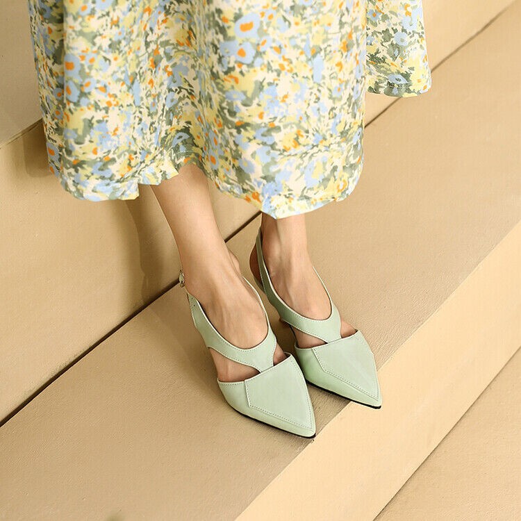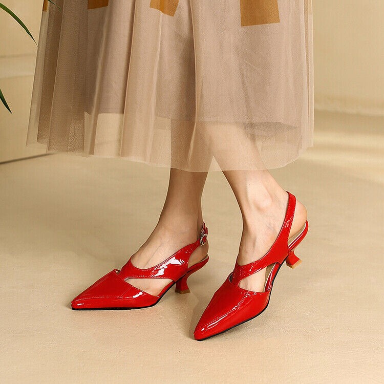 Women's Low Kitten High Heels Slingback Sandals Patent Leather Pointed Toe Shoes