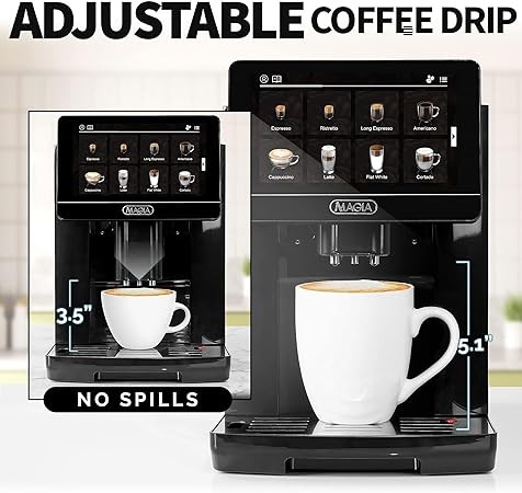 Zulay Magia Super Automatic Coffee Espresso Machine - Durable Automatic Espresso Machine With Grinder - Espresso Coffee Maker With Easy To Use 7” Touch Screen, 20 Coffee Recipes, 10 User Profiles